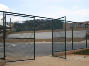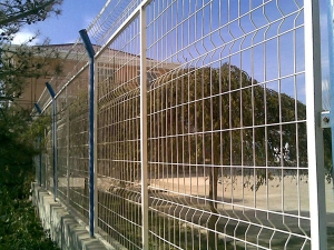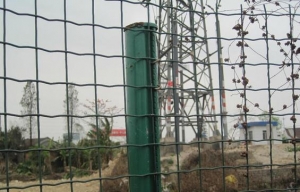防腐处理:隔离栅经除锈、打磨、钝化、涂塑,硫化等工艺后,采用镀塑处理,色彩为果绿色,镀层厚度为0.5~0.6mm,镀粉采用性能较佳的进口耐候性树脂粉料,镀层必须颜色一致,表面光滑,不允许有流挂、滴瘤或多余结块。镀件表面应无漏镀、露铁等缺陷。