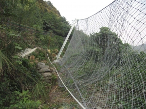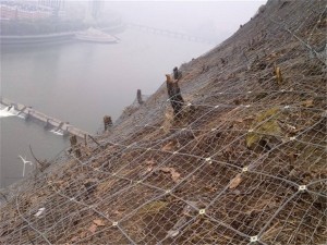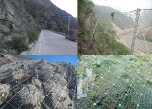 被动防护是由钢丝绳网、环形网、(需拦截小块落石时附加一层铁丝格栅)、固定系统(锚杆、拉锚绳、基座和支撑绳)减压环和钢柱四个主要部分构成。钢柱和钢丝绳网连接组合构成一个整体,对所防护的区域形成面防护,从而阻止崩塌岩石土体的下坠,起到边坡防护作用。材质:钢丝绳网、支撑绳和减压环。构造:由钢丝绳网或环形网(需拦截小块落石时附加一层铁丝格栅)、固定系统(锚杆、拦锚绳、基座和支撑绳)、减压环和钢柱四个主要部分构成。适用于建筑设施旁有缓冲地带的高山峻岭,把岩崩、飞石、雪崩、泥石流拦截在建筑设施之外,避开灾害对建筑设施的毁坏 。常用规格:[钢柱(间距10M),带消能环的∮16双支撑绳和∮16“人”字形上拉锚绳(每跨6个消能环),∮16侧拉锚绳(单绳),◇/08/200/4*5㎡钢丝绳网,∮8缝合绳,格栅网]